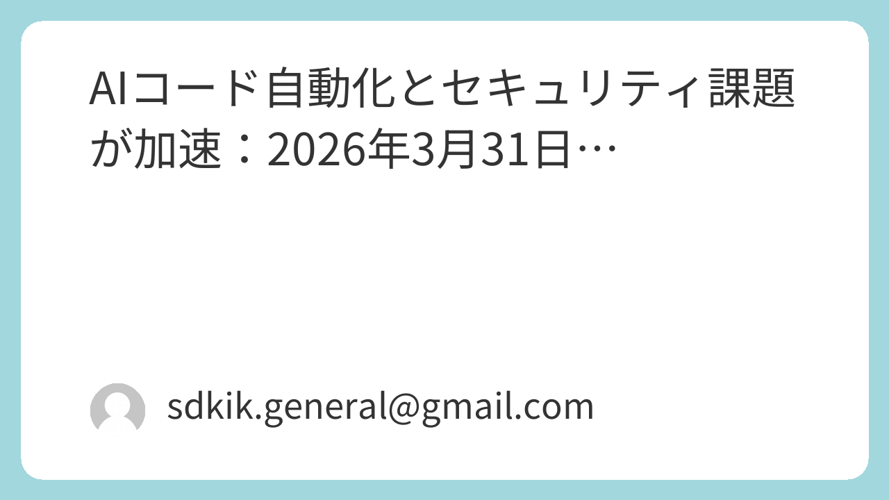 2026年3月31日の技術ニュースが示すのは、AIコーディング自動化の急速な進展と、それに伴うセキュリティ・品質管理課題の緊急性です。