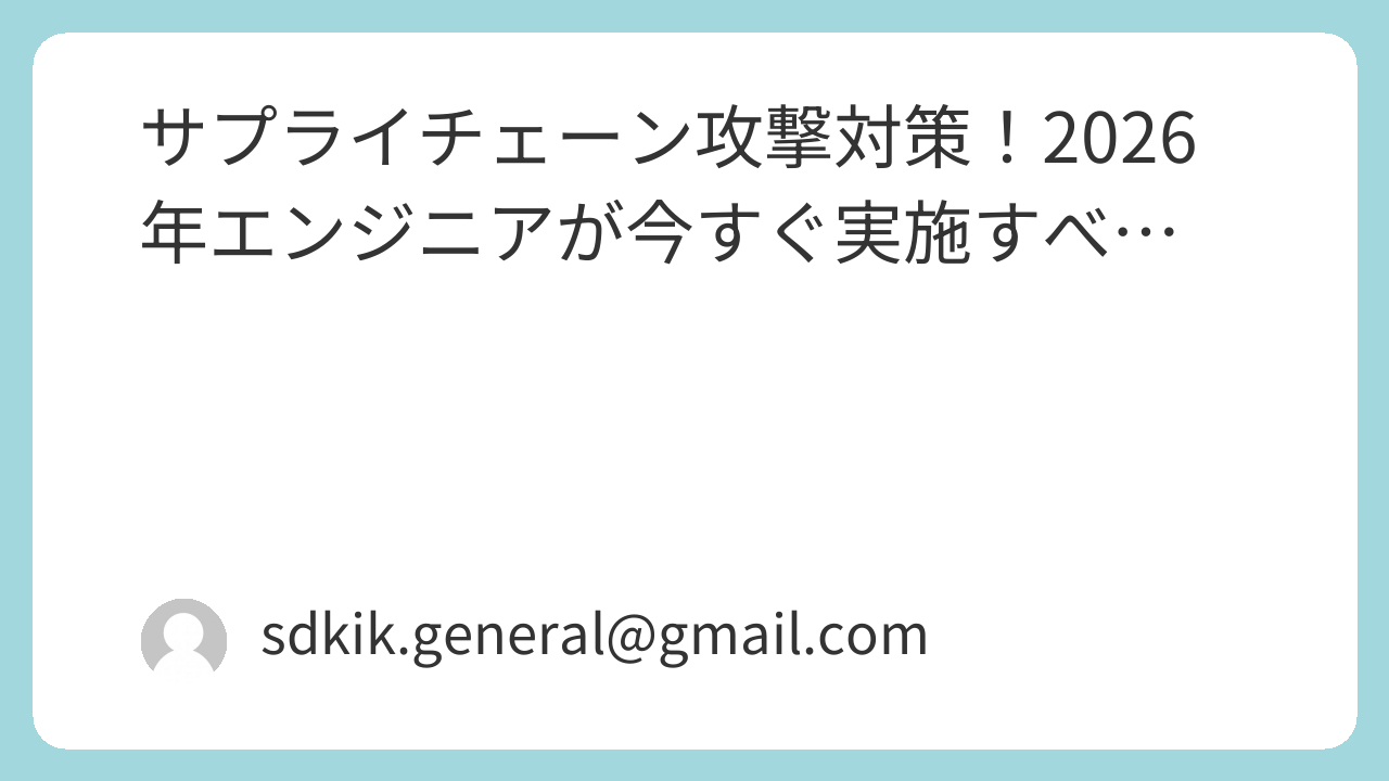 サプライチェーン攻撃対策!2026年エンジニアが今すぐ実施すべ…